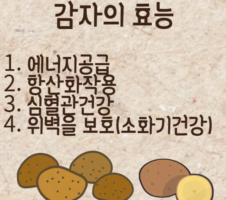 제철을 맞은 감자는 맛도 있고 우리 몸에 좋은 영양분을 제공합니다 아래에 감자의 효능에 대해 적어놓았습니다